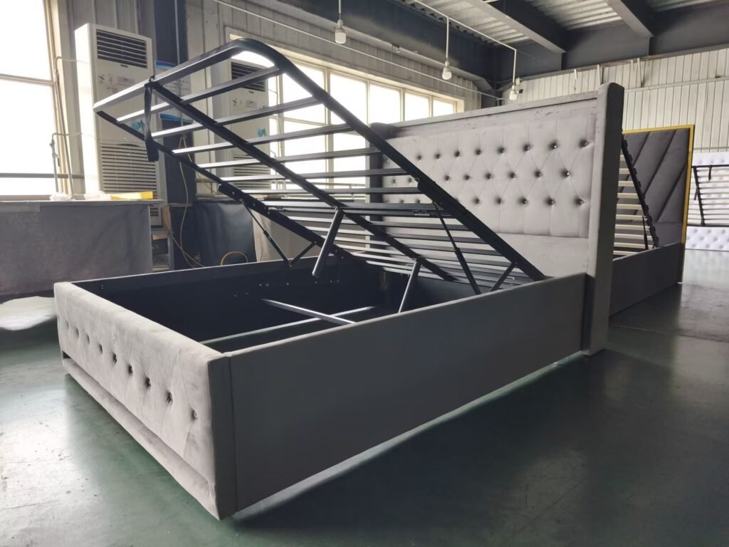 Model: Gas Lift Upholstered Bed with Foldable Base – Metal Slat